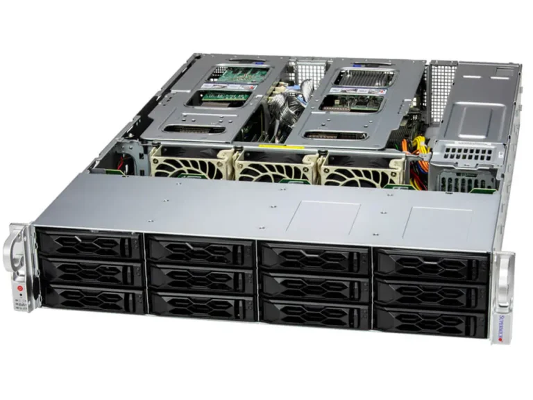 Supermicro, CloudDC SYS-621C-TN12R x13 2U Rackmount, 2X Intel Xeon Silver 4410Y 12C 150W 2.0GHz Processor, 12x 3.5/2.5″ hot-swap hybrid NVMe/SATA/SAS drive bays, 4X 32GB DDR5-4800 2RX8, 2X 960GB NVMe M.2 Intel X710 4x 10GbE (2xRJ45 & 2xSFP+), 2X 1200W redundant Titanium.TPM 2.0, Supermicro Server Manager,621C-TN12R-OTO-40