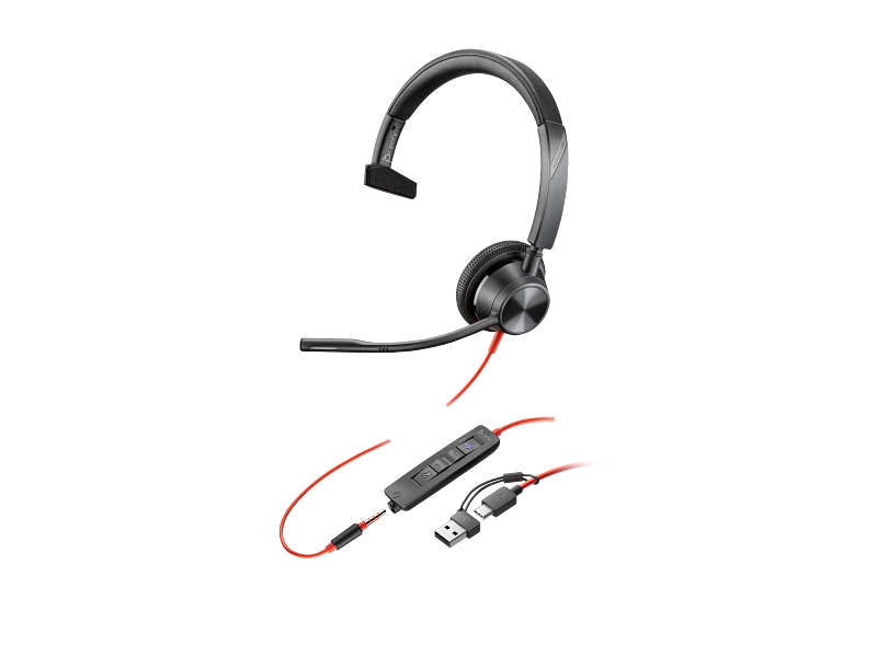 Poly Blackwire 3315 USB-C Headset | Mono On-Ear | Noise-Cancelling Mic | Soft Cushions | Plug-and-Play USB-C | Unified Comms Optimized | SKU 76J14AA